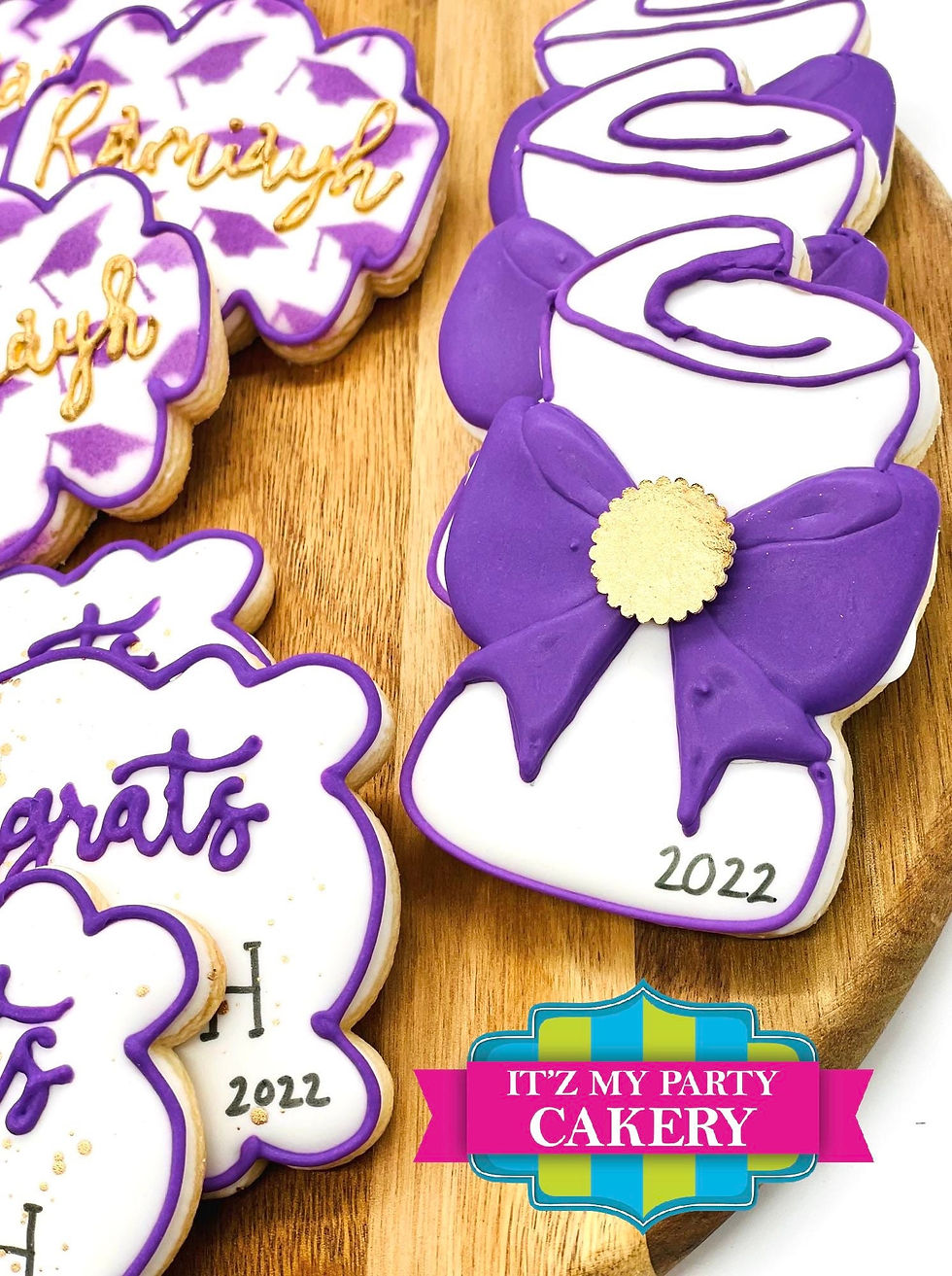Our custom cookies are perfect for any occasion! Whether it's a birthday wedding, baby shower, or corporate event, we have got you covered. You can choose from our gallery or request custom designs, and we offer a minimum of 12 cookies per order. Our cookies come in various sizes, ranging from mini to larger sizes. Let us sweeten up your special event with our scrumptious cookies